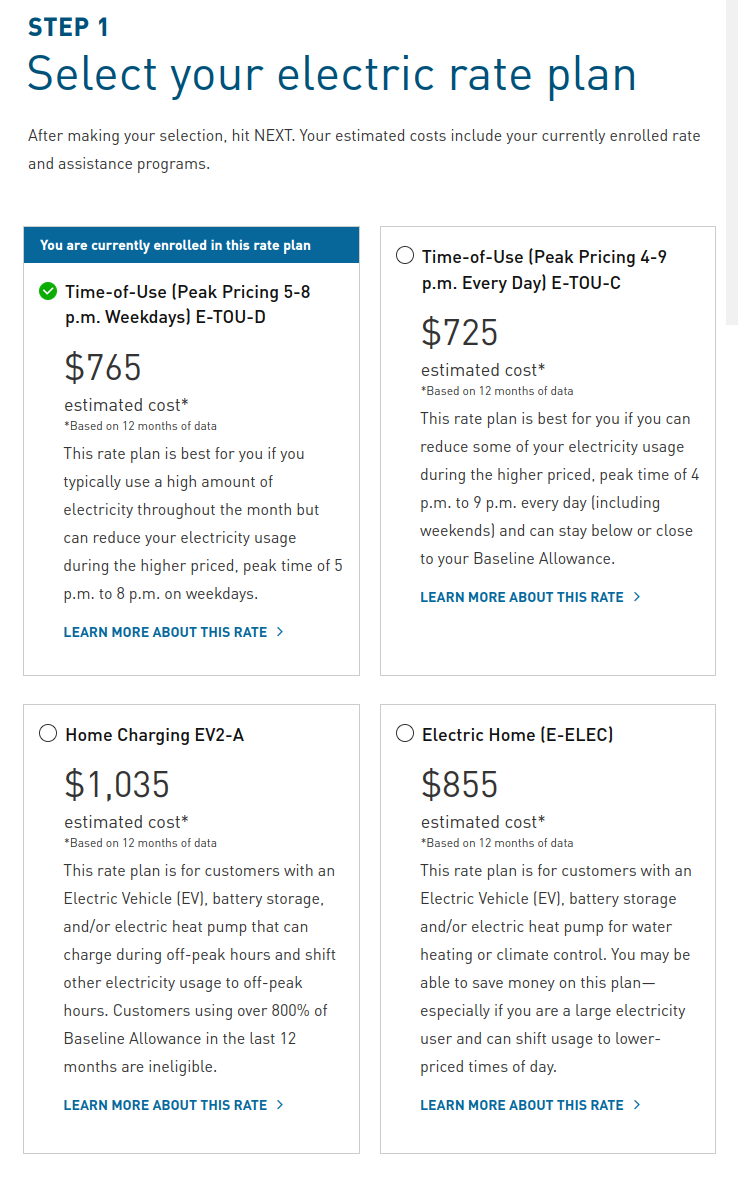 We are on PG&E’s rate plan E-TOU-D5,6. Here’s what our rate7 looks like since we bought the house.